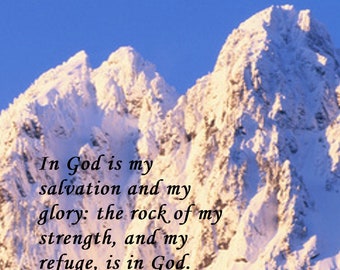 Psalm 62 7 Bible Scripture On Mountain Peak Background Digital Etsy