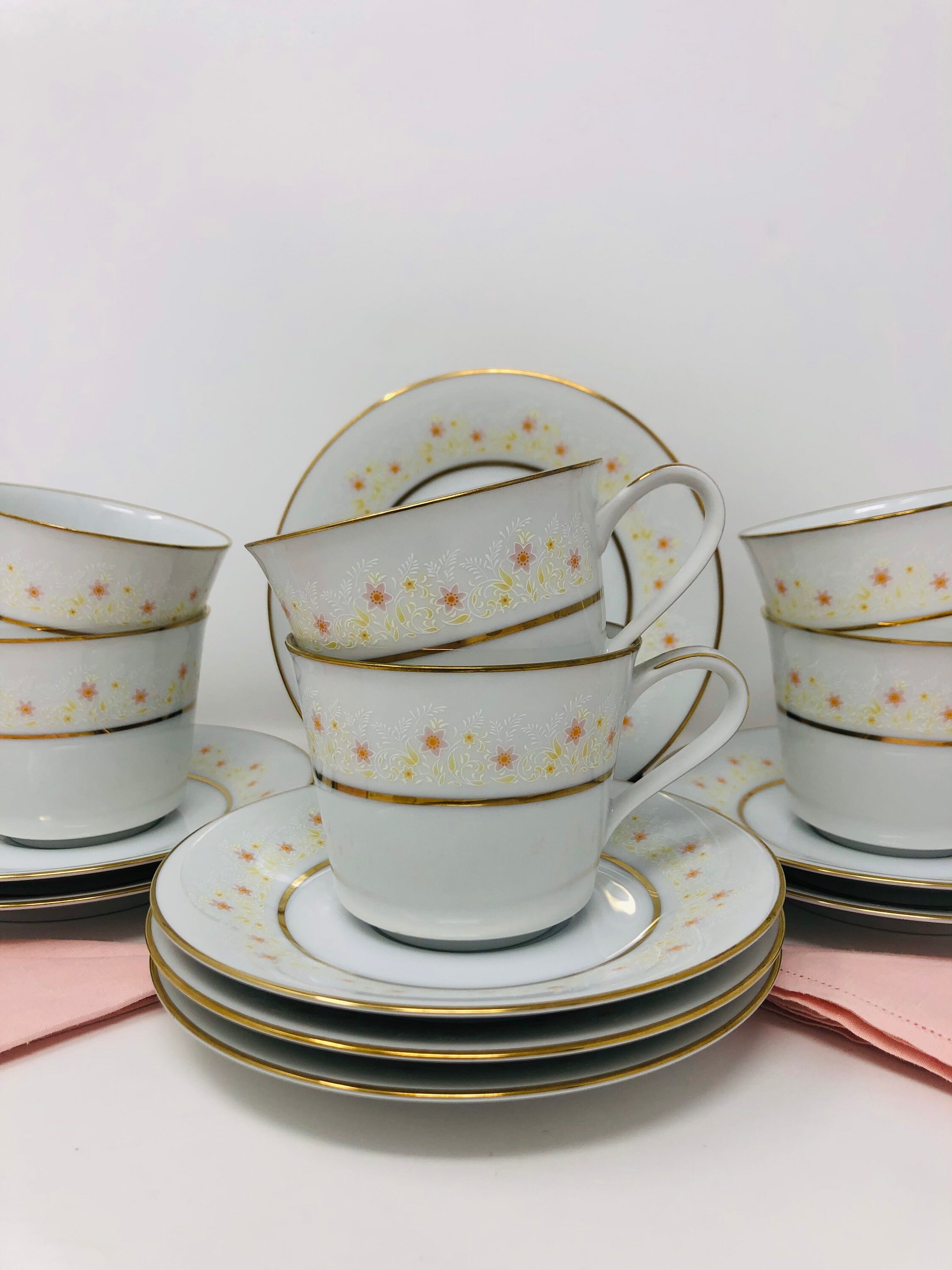 Augusta Noritake Cups And Saucers 6 Sets 2 Extra Saucers 1970s Etsy Uk